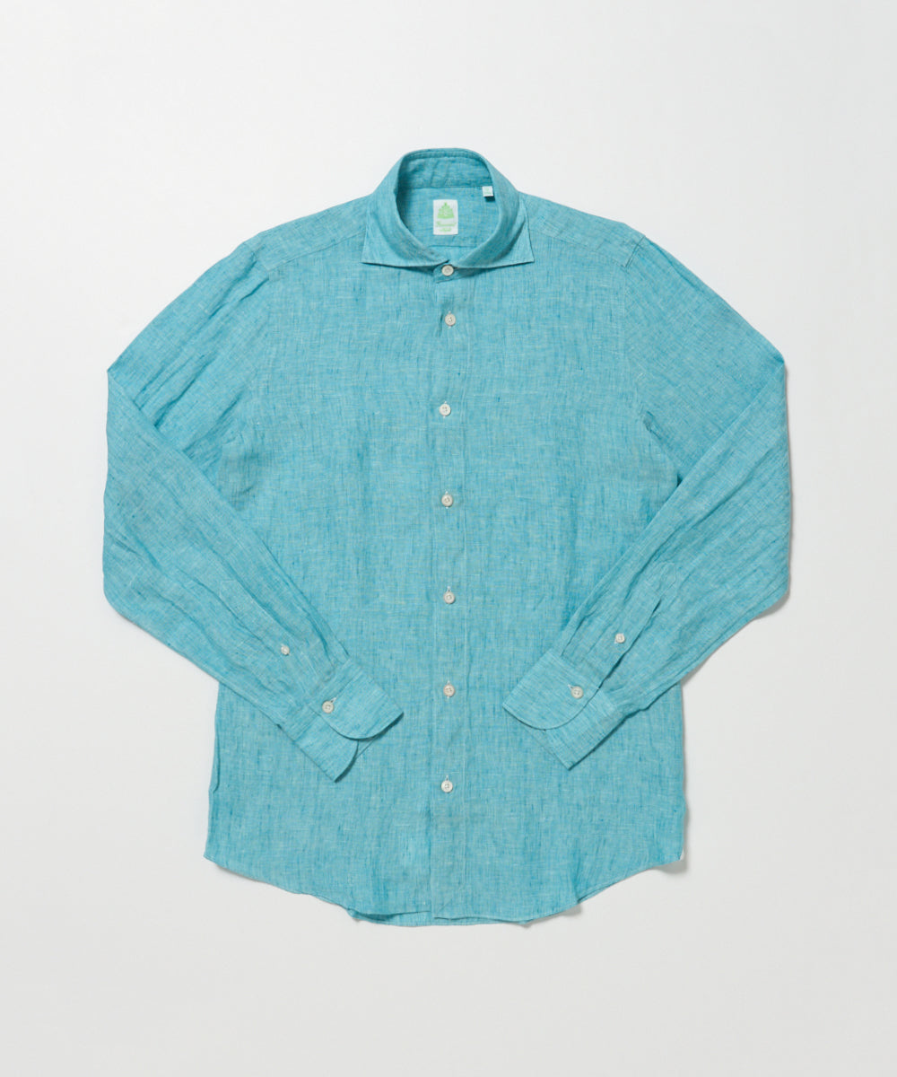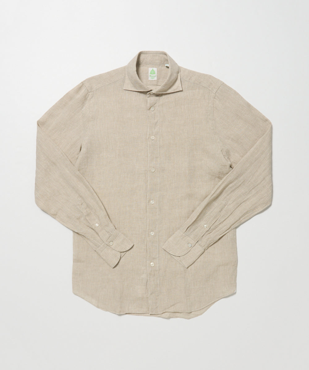 生地は、同ブランドでは欠かせないリネンファブリックを採用。Finamoreのリネンシャツは、とてもリネン100%とは思えないほどのタッチの良さが特徴です。