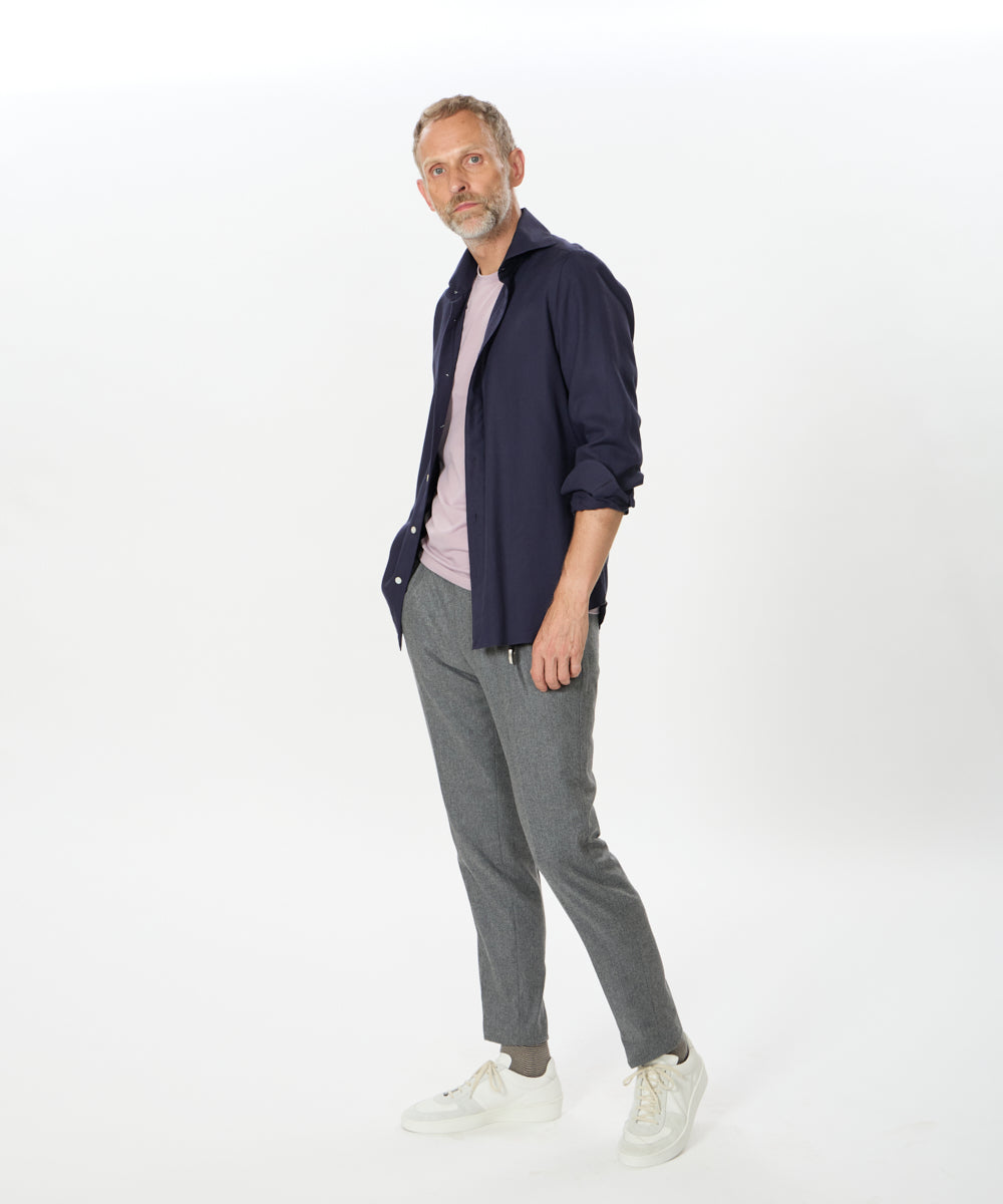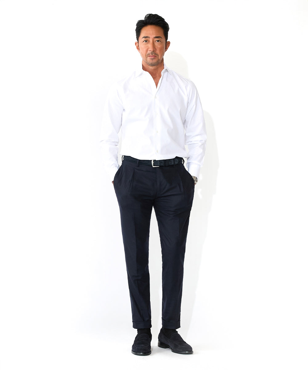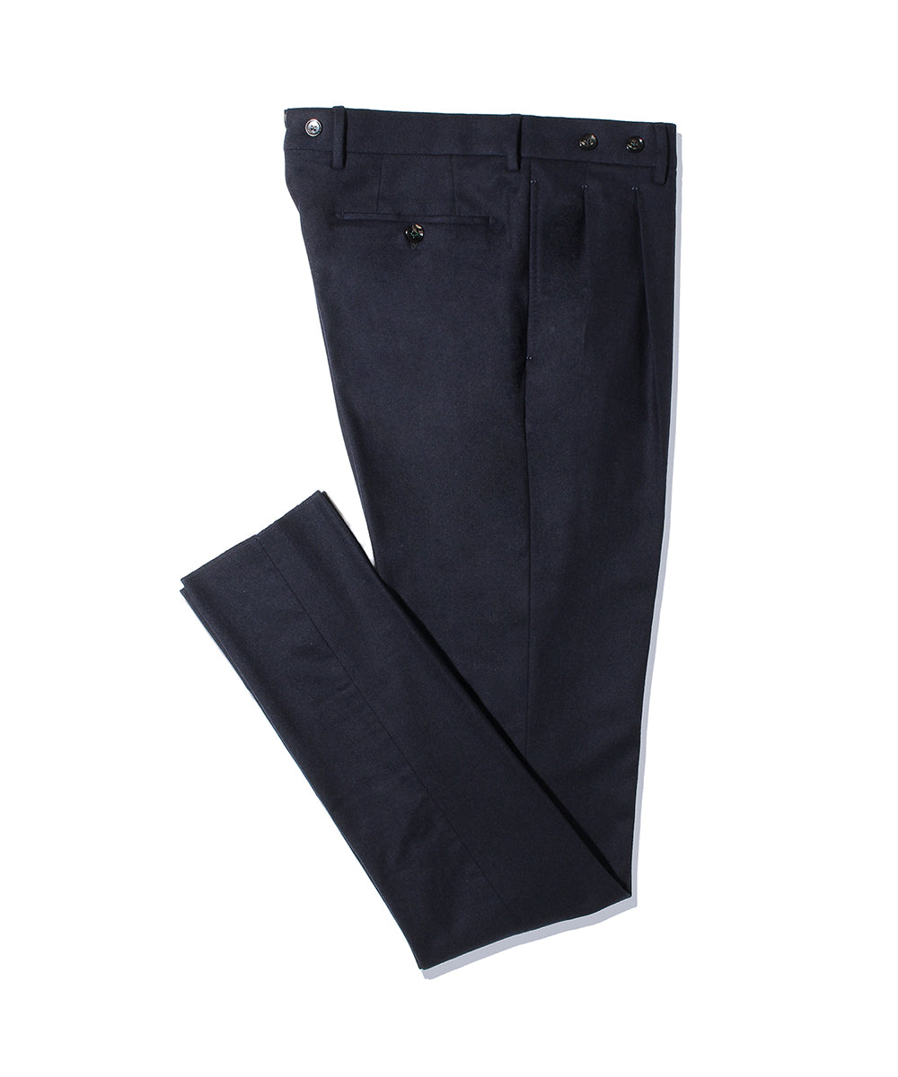 生地は、この秋冬の新素材となる"カシミヤナイロンストレッチ"とカシミヤならではな高級感は言わずもがな、パンツとしての丈夫さやコンフォートさも備わった究極なファブリックをセレクトいたしました。