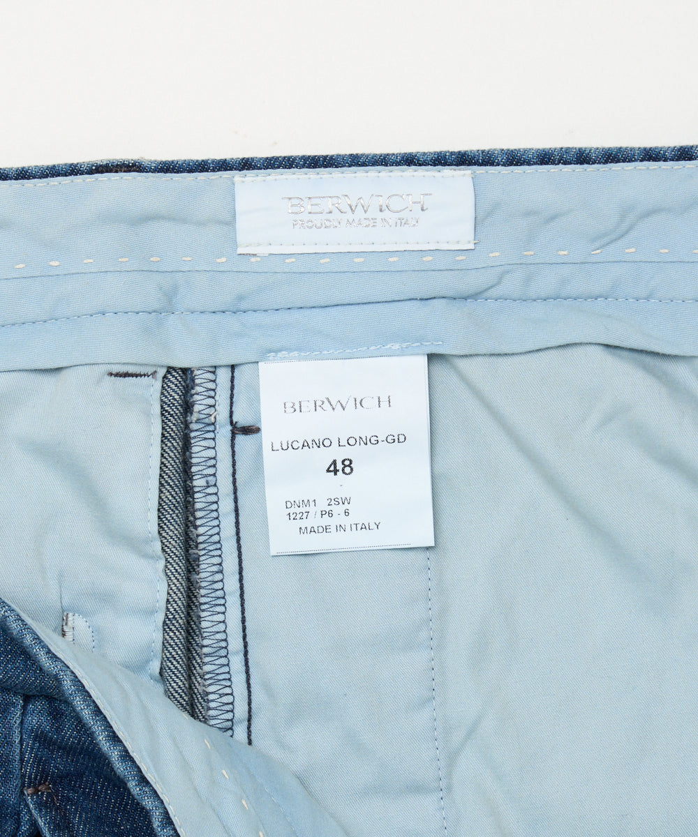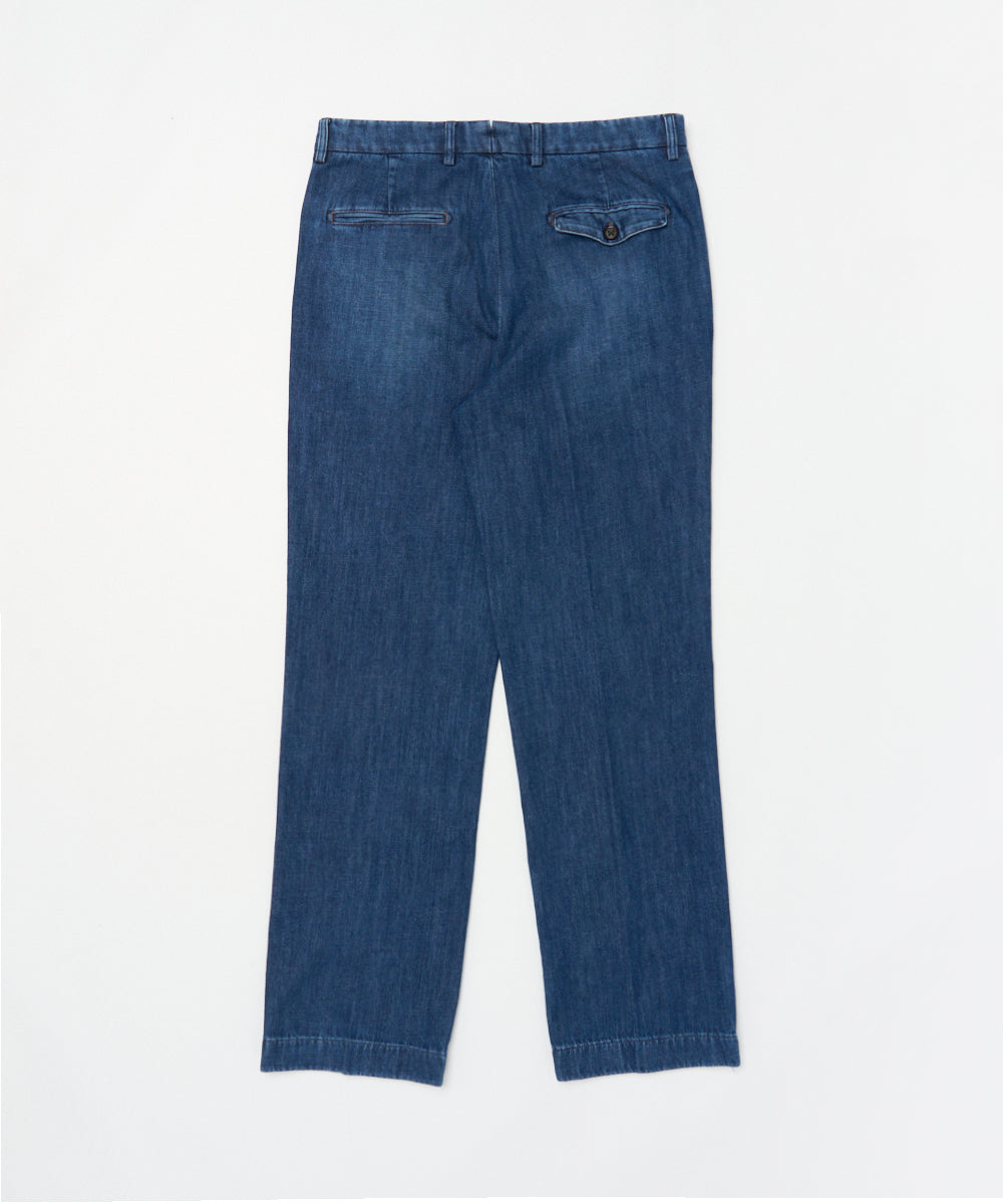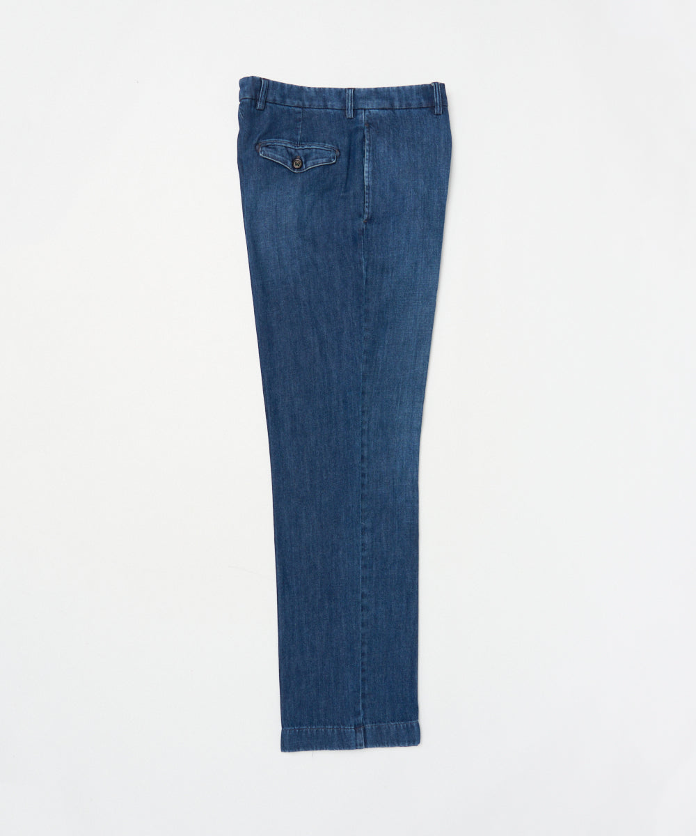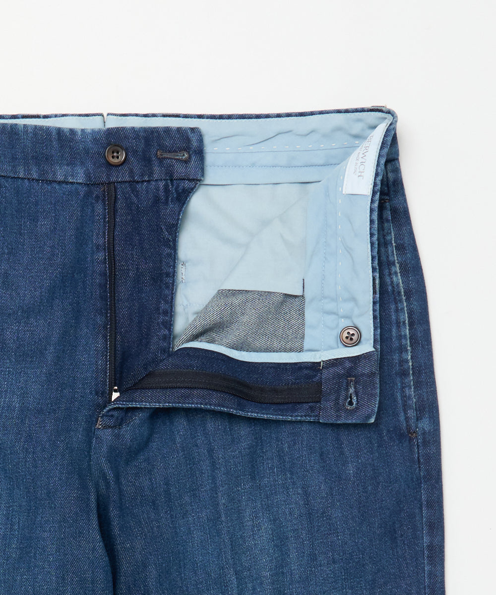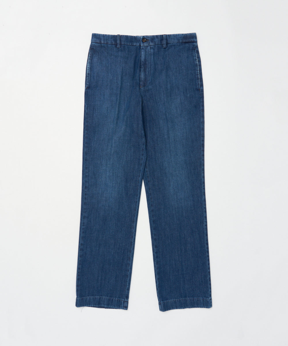 ワイドストレート×デニムという組み合わせにより、BERWICHが誇る美脚ラインを最大限に引き出した一本。穿き込むほどに馴染み、さりげない色落ちがスタイリングにこなれ感を与えます。デニムの表情を持ちながらも、スラックスとしての品格を備えているため、ラフになりすぎず、革靴からスニーカーまで幅広い足元と好相性です。