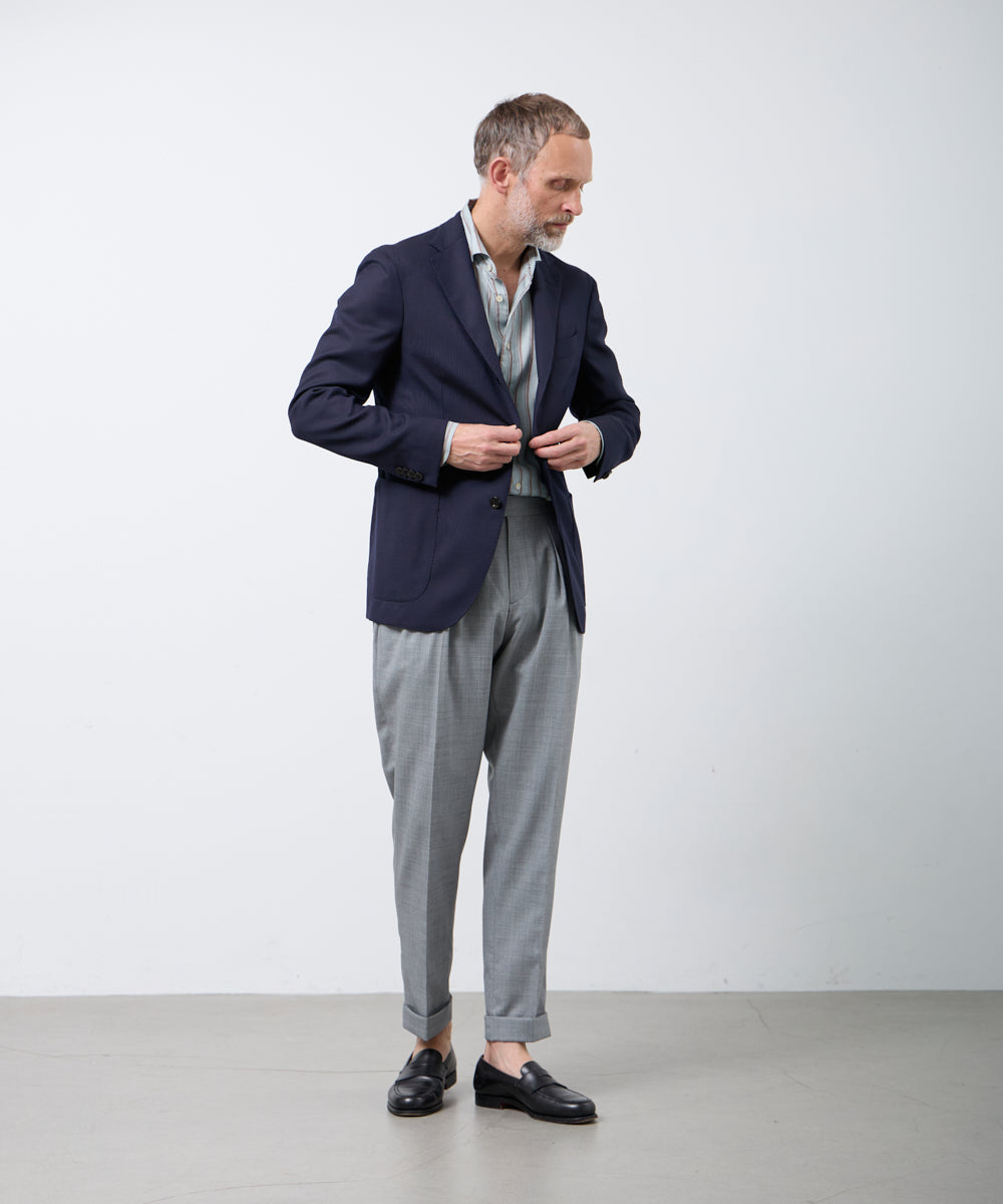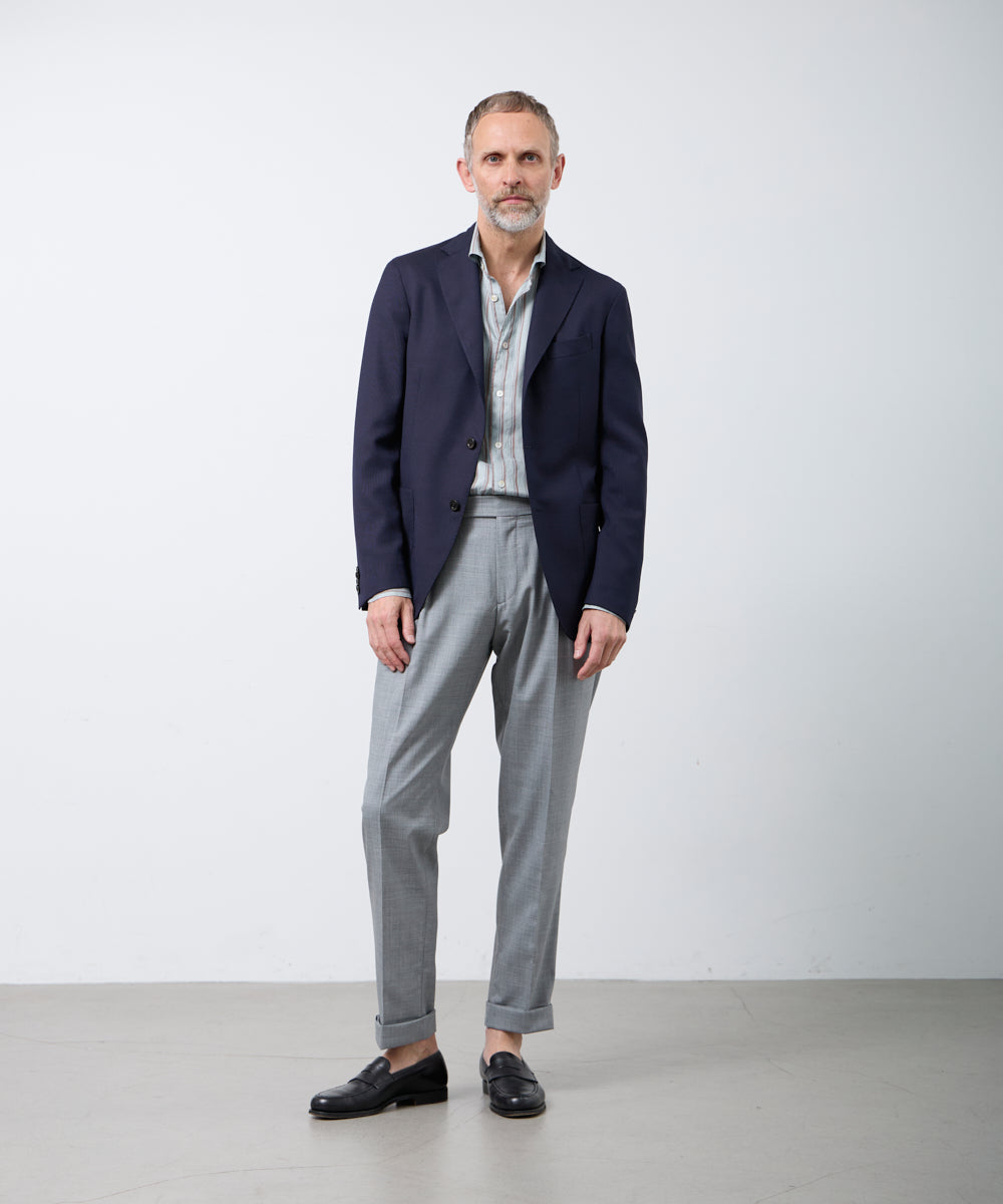 ミニマルでありながら、完成度の高いデザインが魅力です。DETAIL素材にはウール100%を使用し、程よいハリと落ち感を両立。柔らかな肌触りとしなやかなドレープが、スタイリングを上品に格上げします。軽装になりがちな春夏だからこそ、ジャケットを主役にした着こなしが楽しめるのもポイント。