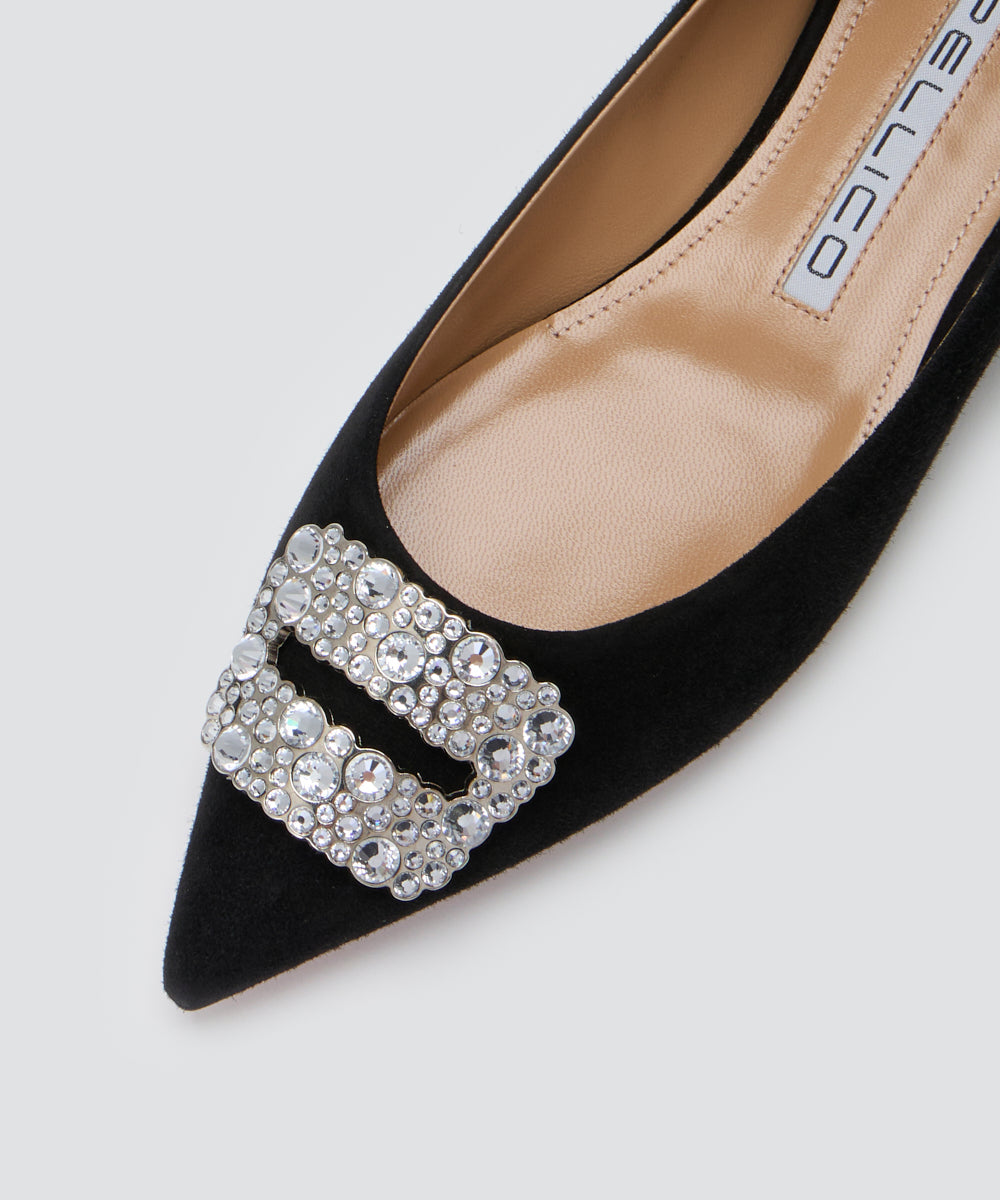 バックルをモチーフにした“ANELLI FIBBIA(アネッリフィッビア)”。ビジューを散りばめたバックルが足元を華やかに彩ります。