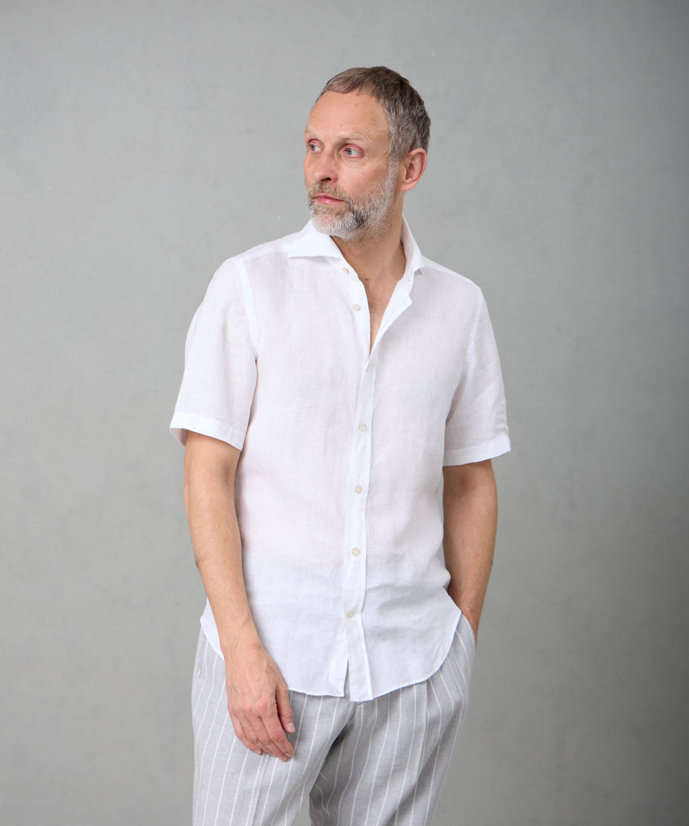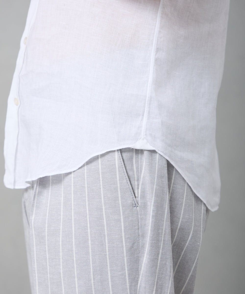 定番モデル「BALI(バリィ)」をベースに、着丈を約5cm短く設定した半袖シャツ。バランスの取れたシルエットで、一枚でも様になる仕上がりです。目の細かいステッチワークなど、細部にまで丁寧に作り込まれており、シンプルながらも味わいを感じさせる一着。上質さが自然と伝わる、Finamoreらしいシャツに仕上がっています。