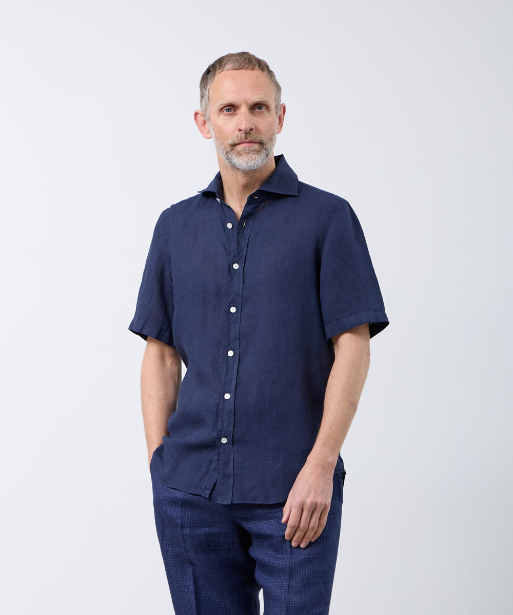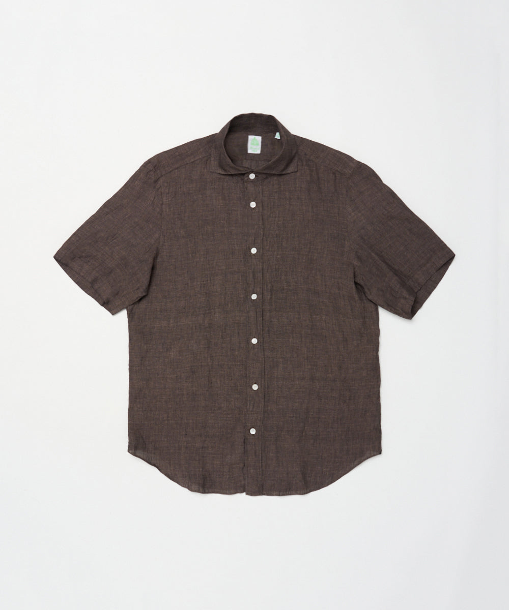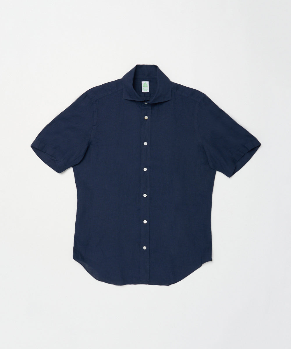 定番モデル「BALI(バリィ)」をベースに、着丈を約5cm短く設定した半袖シャツ。バランスの取れたシルエットで、一枚でも様になる仕上がりです。目の細かいステッチワークなど、細部にまで丁寧に作り込まれており、シンプルながらも味わいを感じさせる一着。上質さが自然と伝わる、Finamoreらしいシャツに仕上がっています。