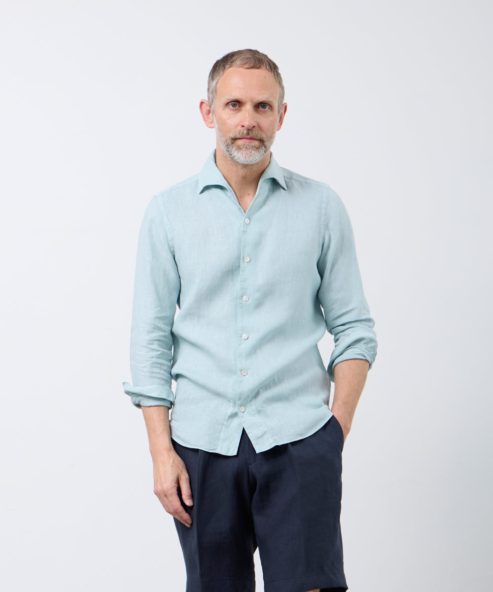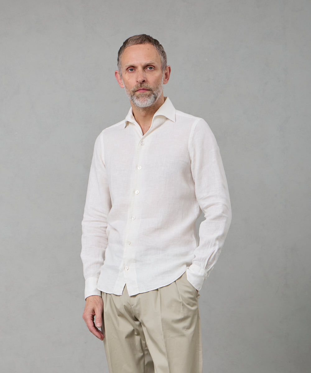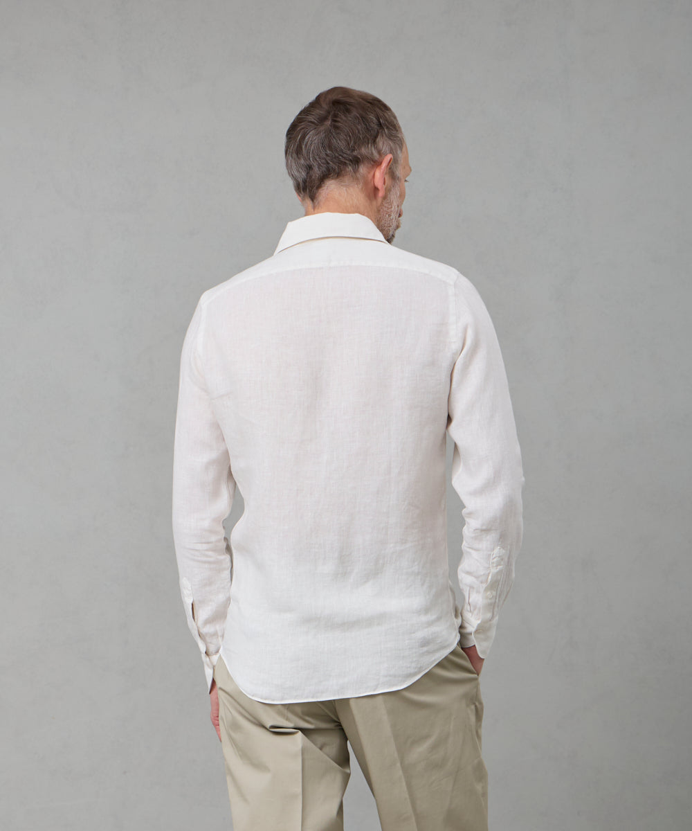 夏には欠かせないリネンファブリックを採用。リネンならではの高い通気性と吸湿性により、熱がこもりにくく、快適な着心地を保ちます。リネン特有のさりげないシワ感が生み出す表情は、かっちりしすぎない抜け感を演出。着込むほどに柔らかさが増し、身体に馴染むリネンの経年変化は、大人のカジュアルスタイルにさりげない品格をもたらします。カラーは、イタリアならではのペールカラーを採用。主張しすぎず、それでいて確かな存在感を放つ色味です。