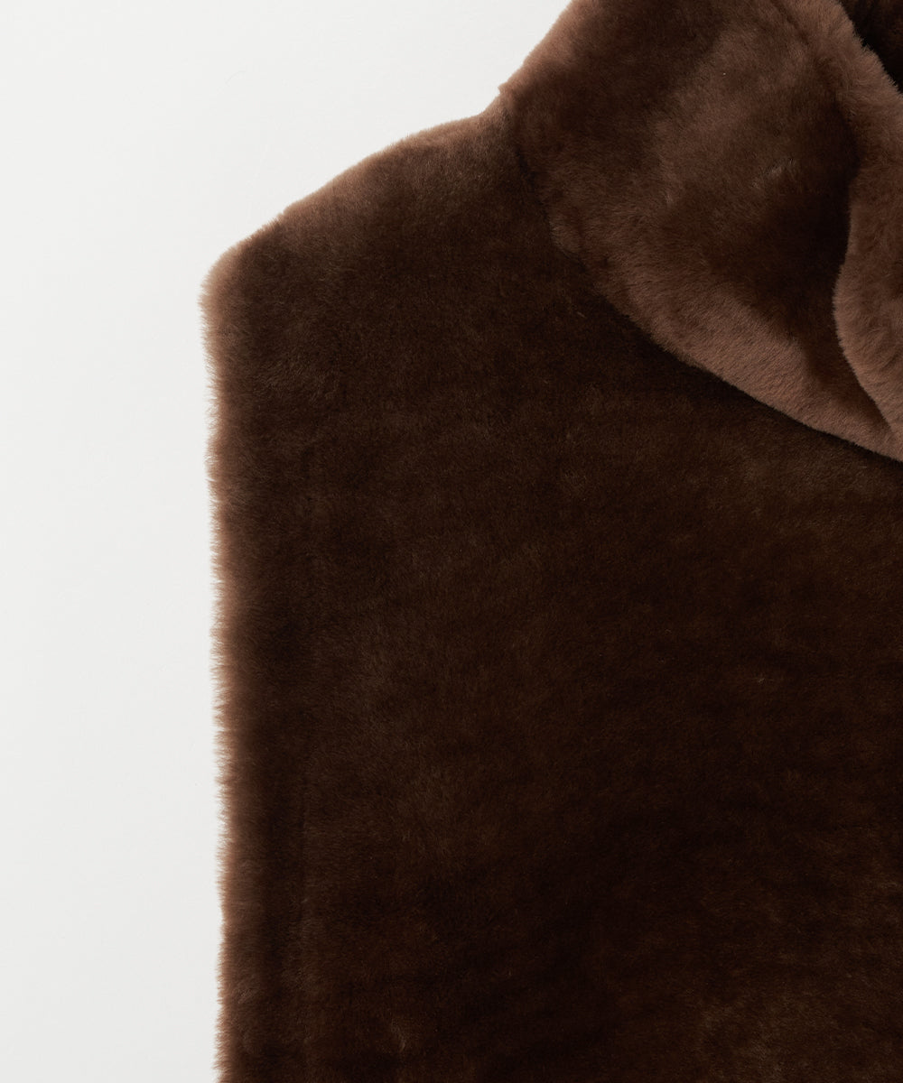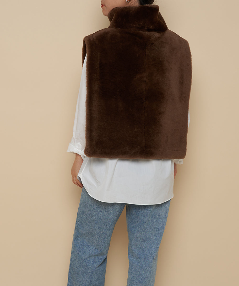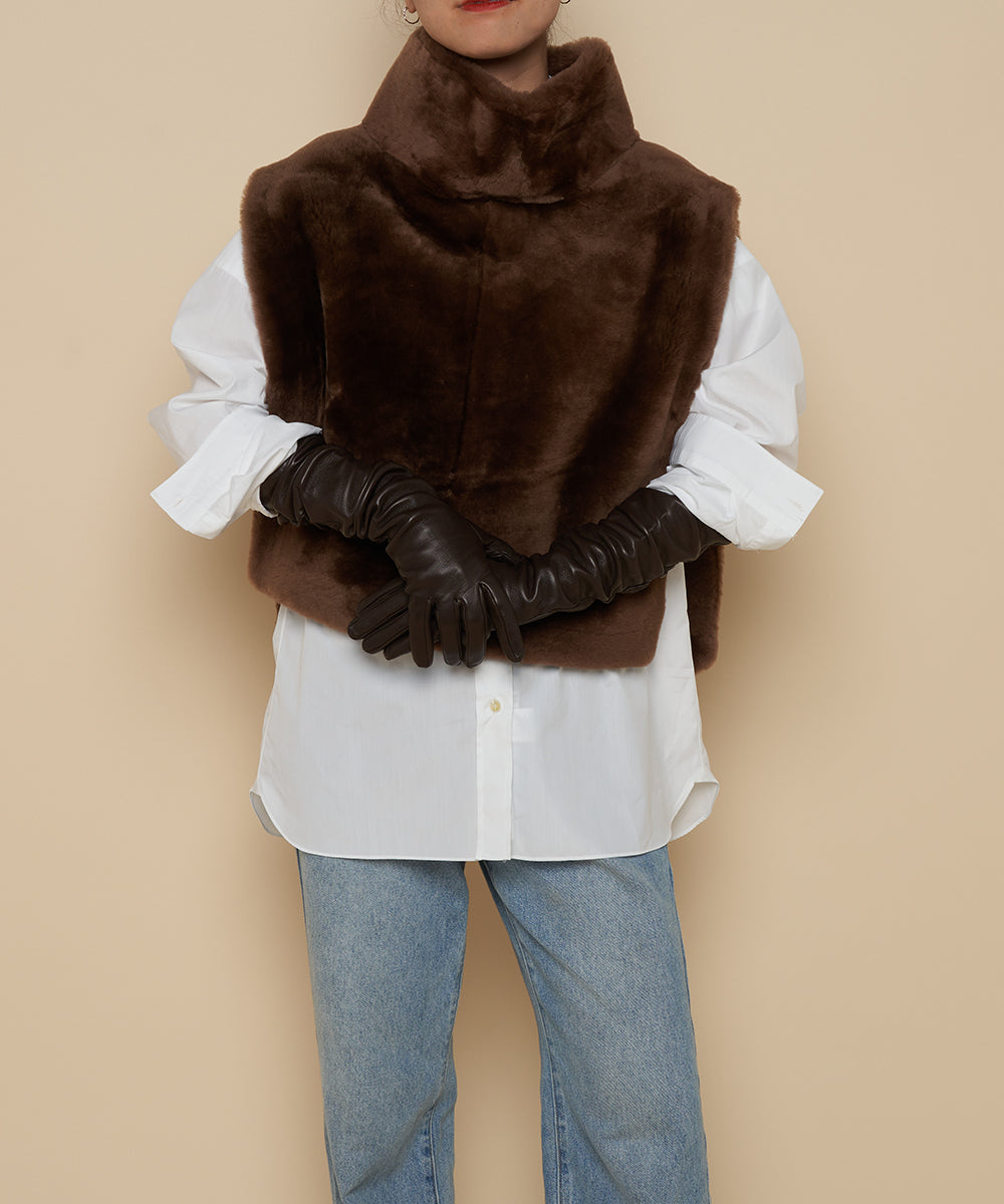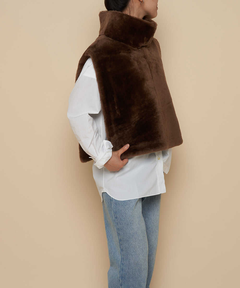 プルオーバーのハイネックジレ。シャツなどと合わせたレイヤードスタイルがおすすめです。