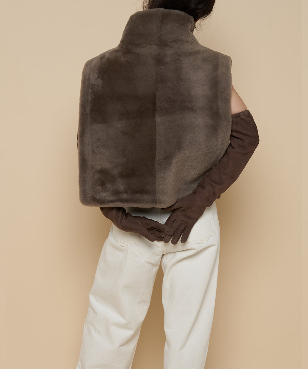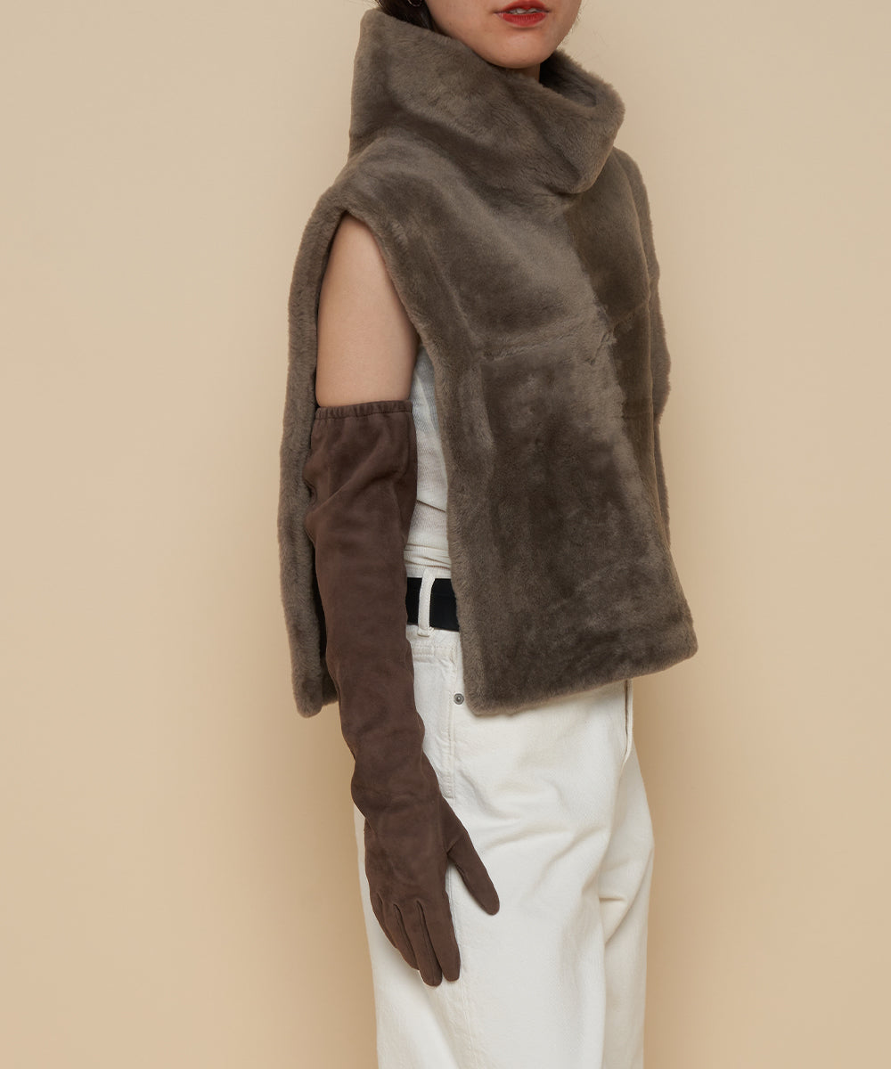 プルオーバーのハイネックジレ。シャツなどと合わせたレイヤードスタイルがおすすめです。