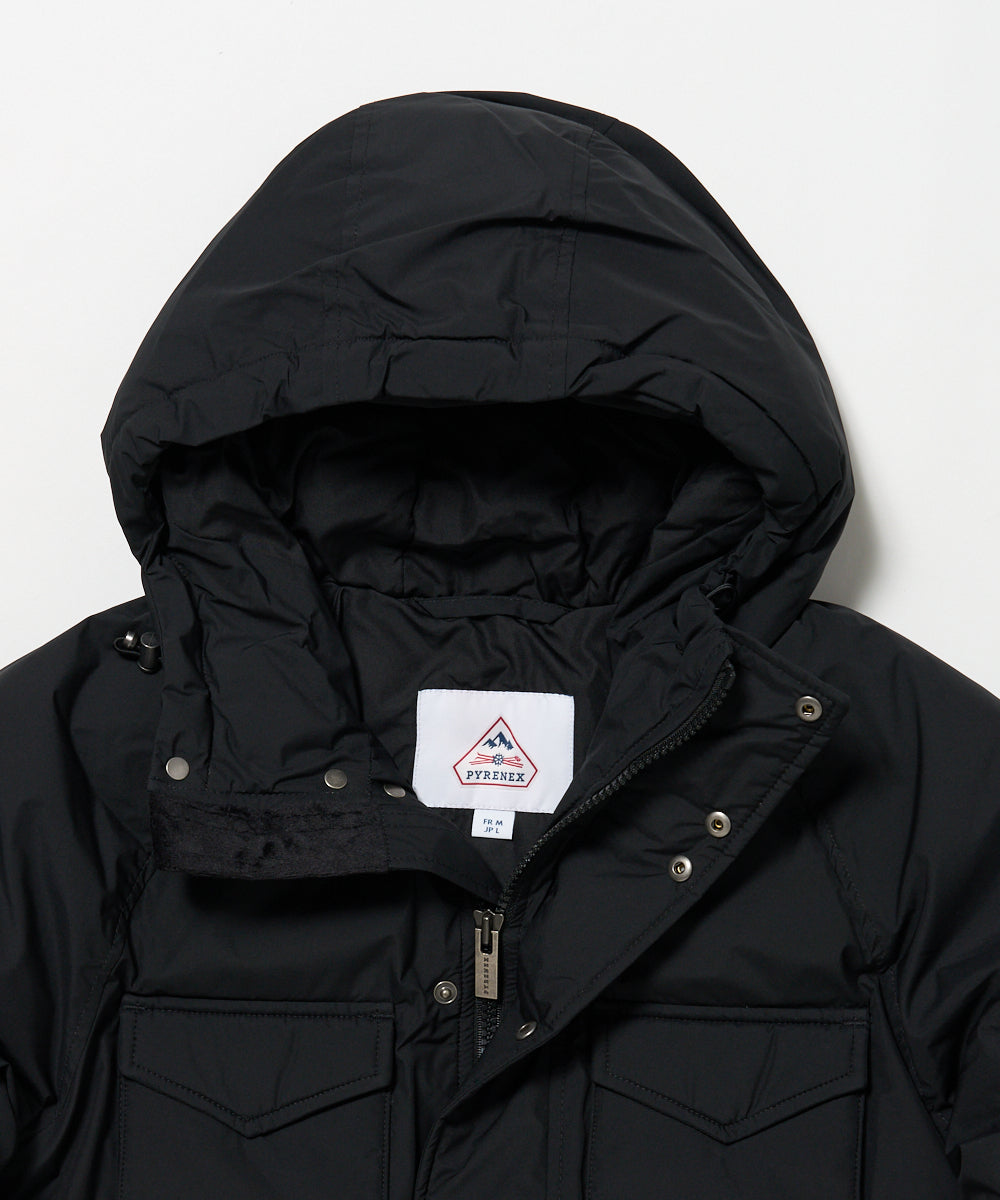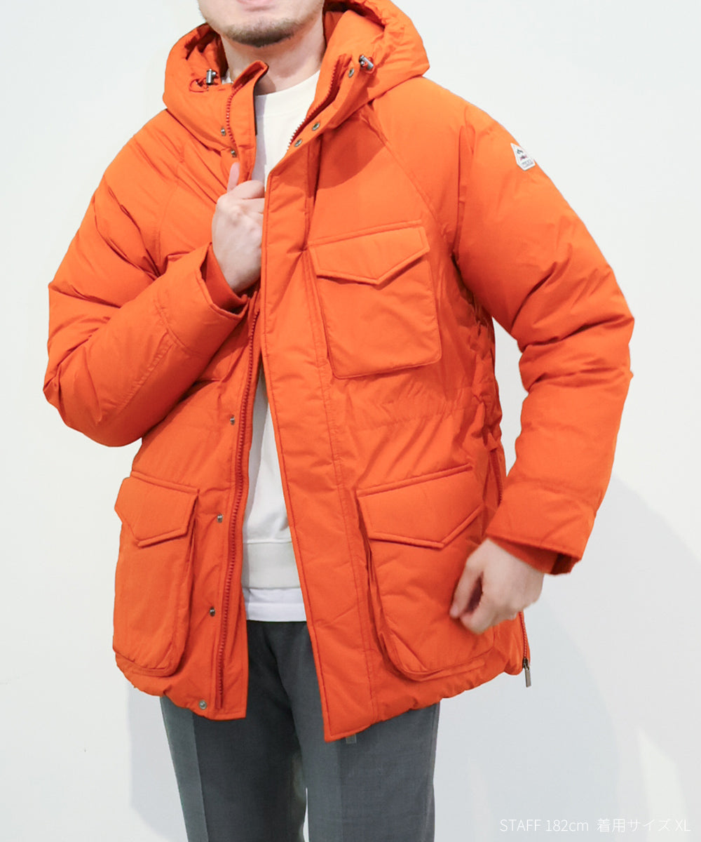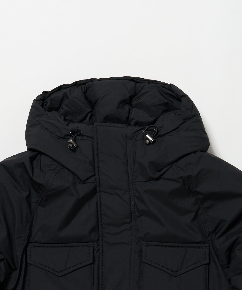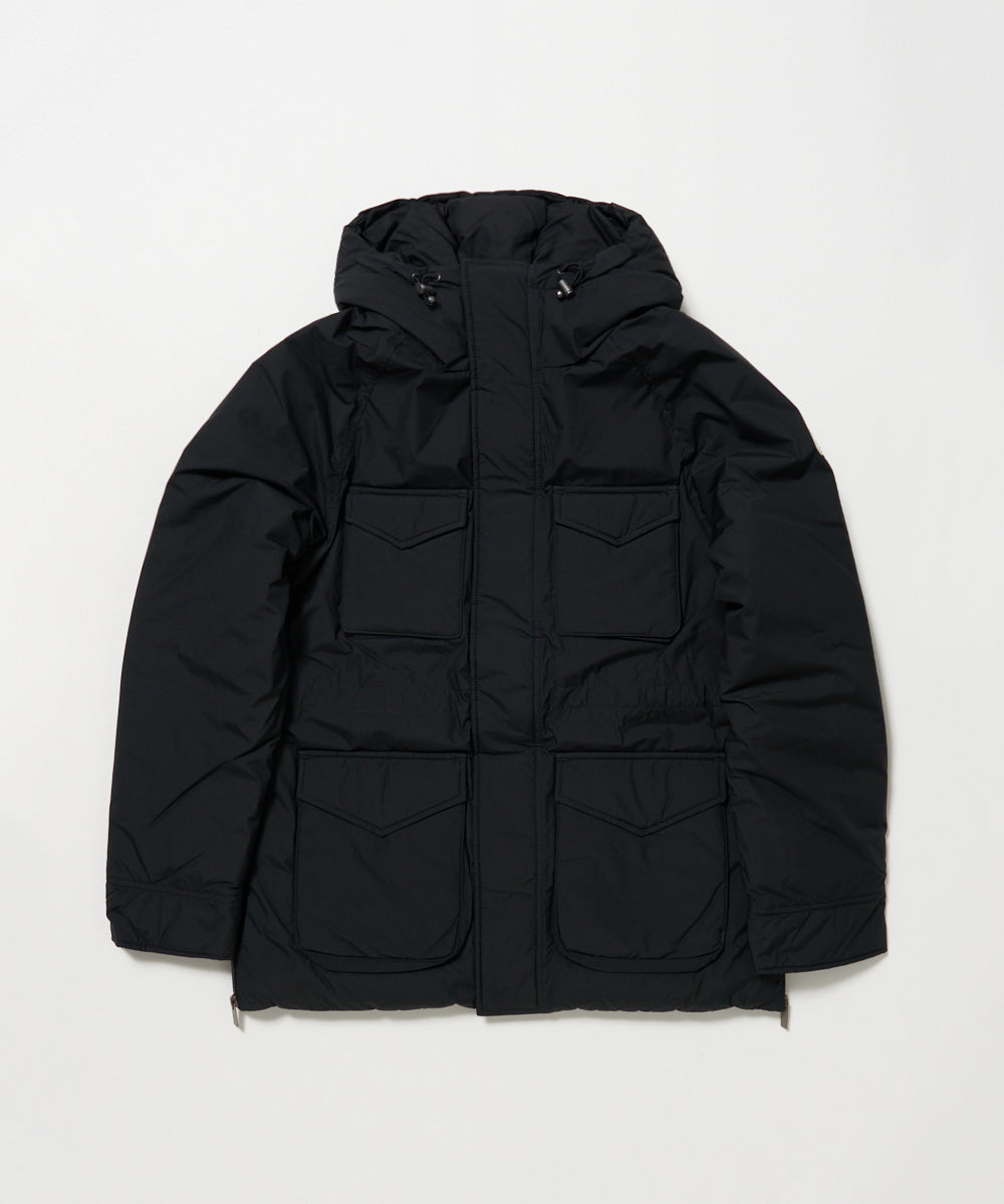ミリタリーの名作フィールドジャケットをモチーフにマウンテンパーカーの要素を加えてアレンジしたダウンジャケット「バズス」。
