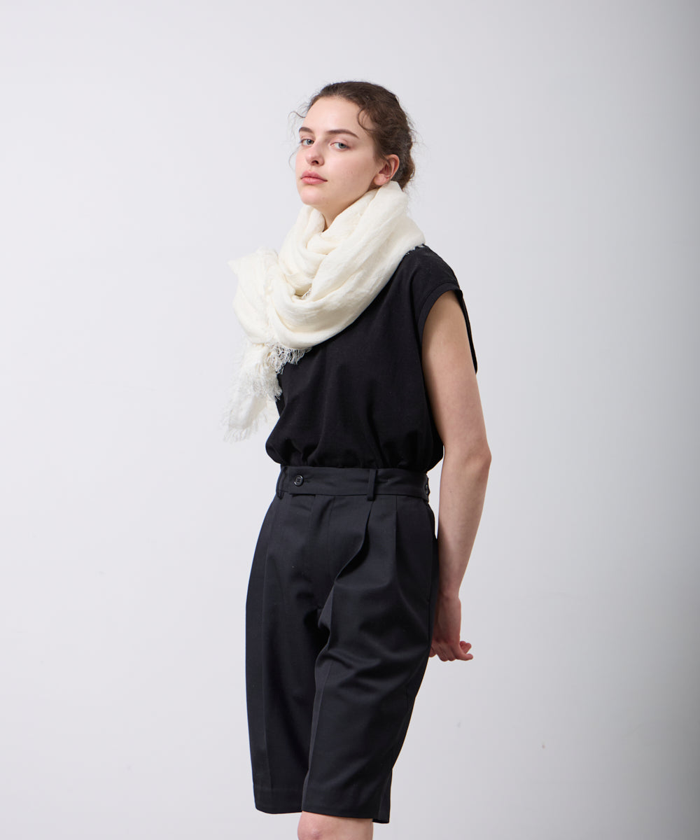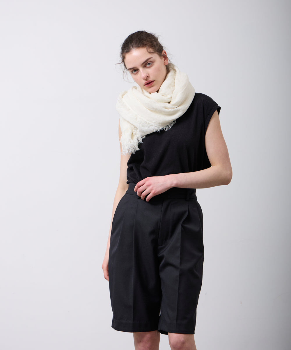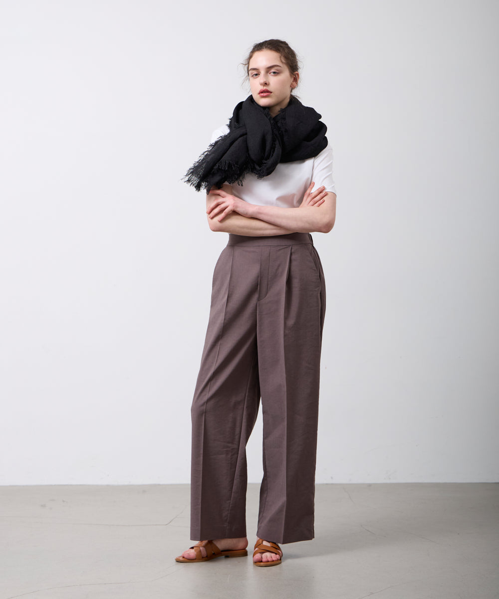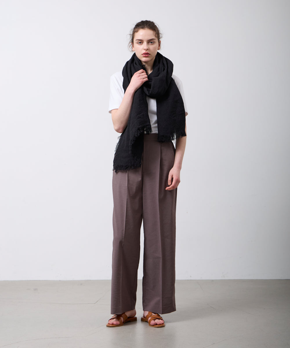 従来より約40%細い上質なリネン原料を使用し、強撚することで、適度な張りとしなやかさを両立。高密度に織り上げることで、薄手で軽やかでありながら、纏ったときにしっかりとした存在感を感じられる生地に仕上げています。